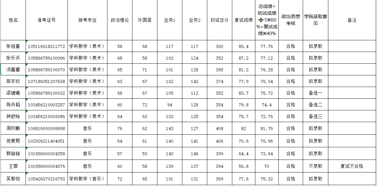 艺术学院2026年硕士研究生复试结果公示(调剂第一批)