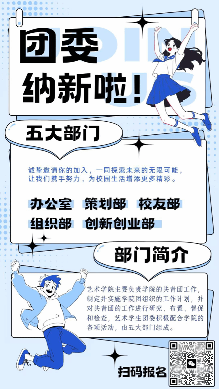 艺术学院团委主要负责学院的共青团工作,制定并实施学院团组织的工作计划,并对共青团的工作进行研究、布置、督促和检查,确保团的工作任务在基层团支部得到具体落实。艺术学生团委积极配合学院的各项活动,共有五大部门。分别为办公室、组织部、校友部、策划部、易班工作部。更多精彩活动等你探索!