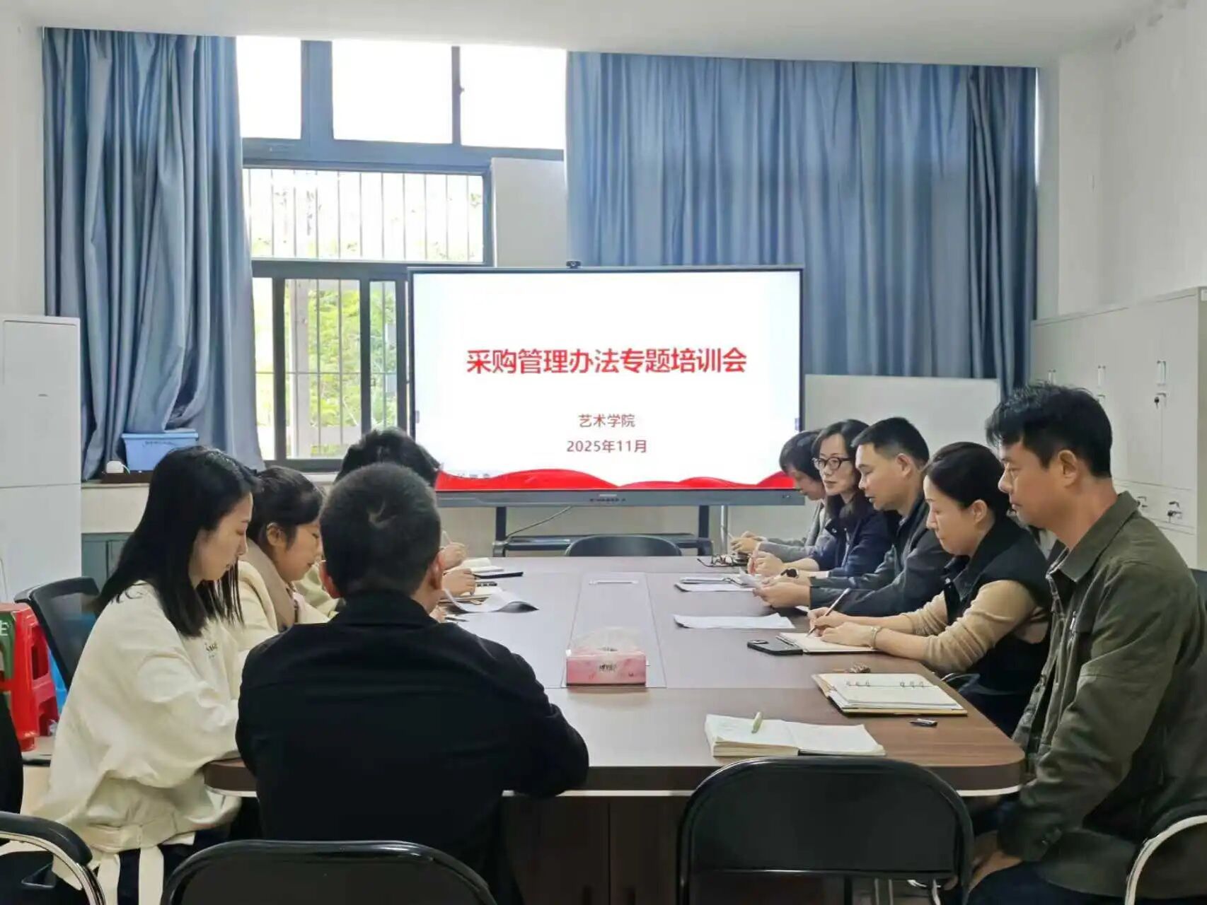为进一步规范学院采购工作流程、构建规范、高效的采购运行机制、提升教职工采购业务认知与实操能力、确保采购工作合法合规、高效有序开展,11月20日上午,艺术学院在学院会议室召开采购管理制度专题培训会。学院领导班子、行政管理人员、辅导员参会。