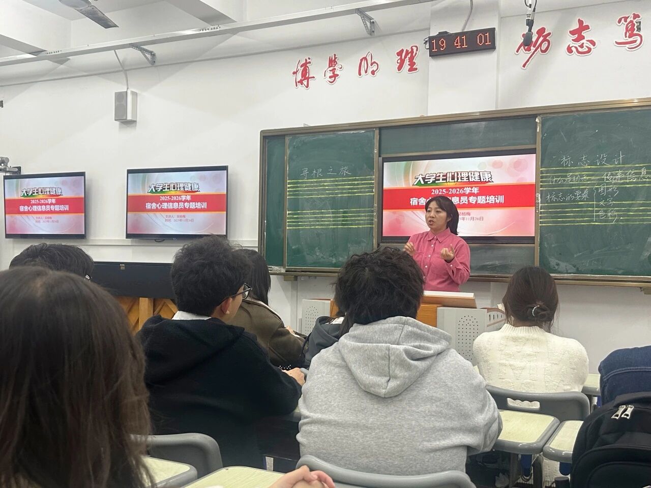 为落实教育部心理健康工作相关要求,响应学校“全员护心”的心理健康教育部署,切实破解宿舍心理信息员履行职责中存在的问题,我院于2025年11月26日晚,在旧图书馆302开展宿舍心理信息员专题培训,本次培训讲座由学院辅导员吴杨梅老师主讲,旨在助力我院各年级宿舍心理信息员系统掌握心理关怀实用技能,为宿舍心理健康防护打下基础。