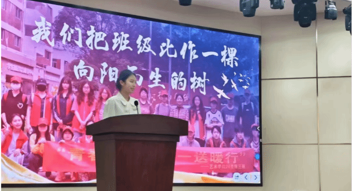 本次评选以“聚五四星火,扬文明班风”为主题,既是对学院团支部与班级建设工作的一次全面检验,也是各集体交流经验、互促共进的重要平台。活动现场,各团支部与班级代表依次登台,以PPT展示为主要形式,结合生动的图文、详实的数据,全方位展现过去一年的建设成果。团支部围绕思想政治建设、组织管理规范、团日活动创新、志愿服务实践等方面,分享了在凝聚青年、引领青年、服务青年中的突出成绩与特色亮点;各班级则聚焦学风建设、纪律管理、班级活动组织、文明风貌培育等内容,介绍了班风建设中的创新做法,充分彰显了艺术学院学子团结奋进、朝气蓬勃、积极向上的精神风貌,精彩的展示赢得了现场师生的阵阵掌声。