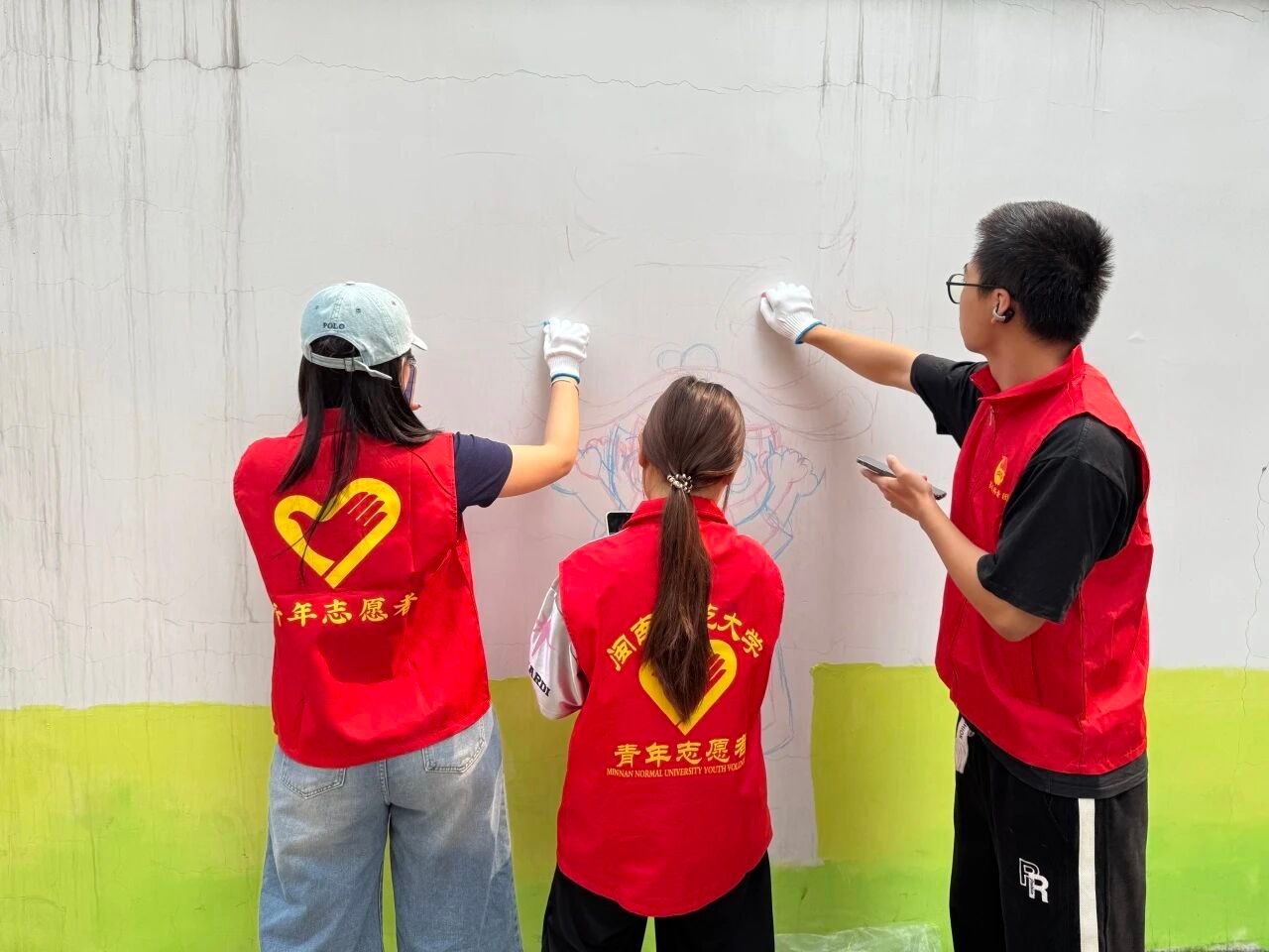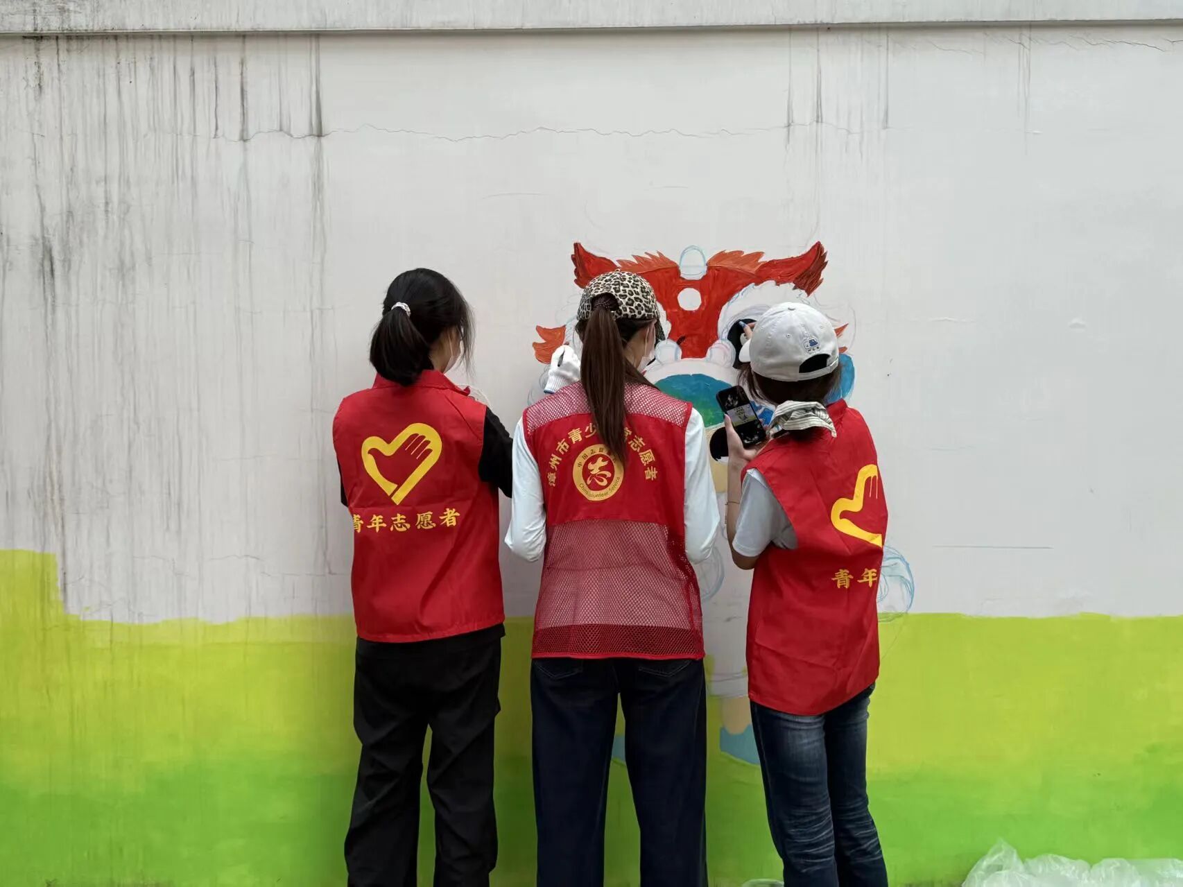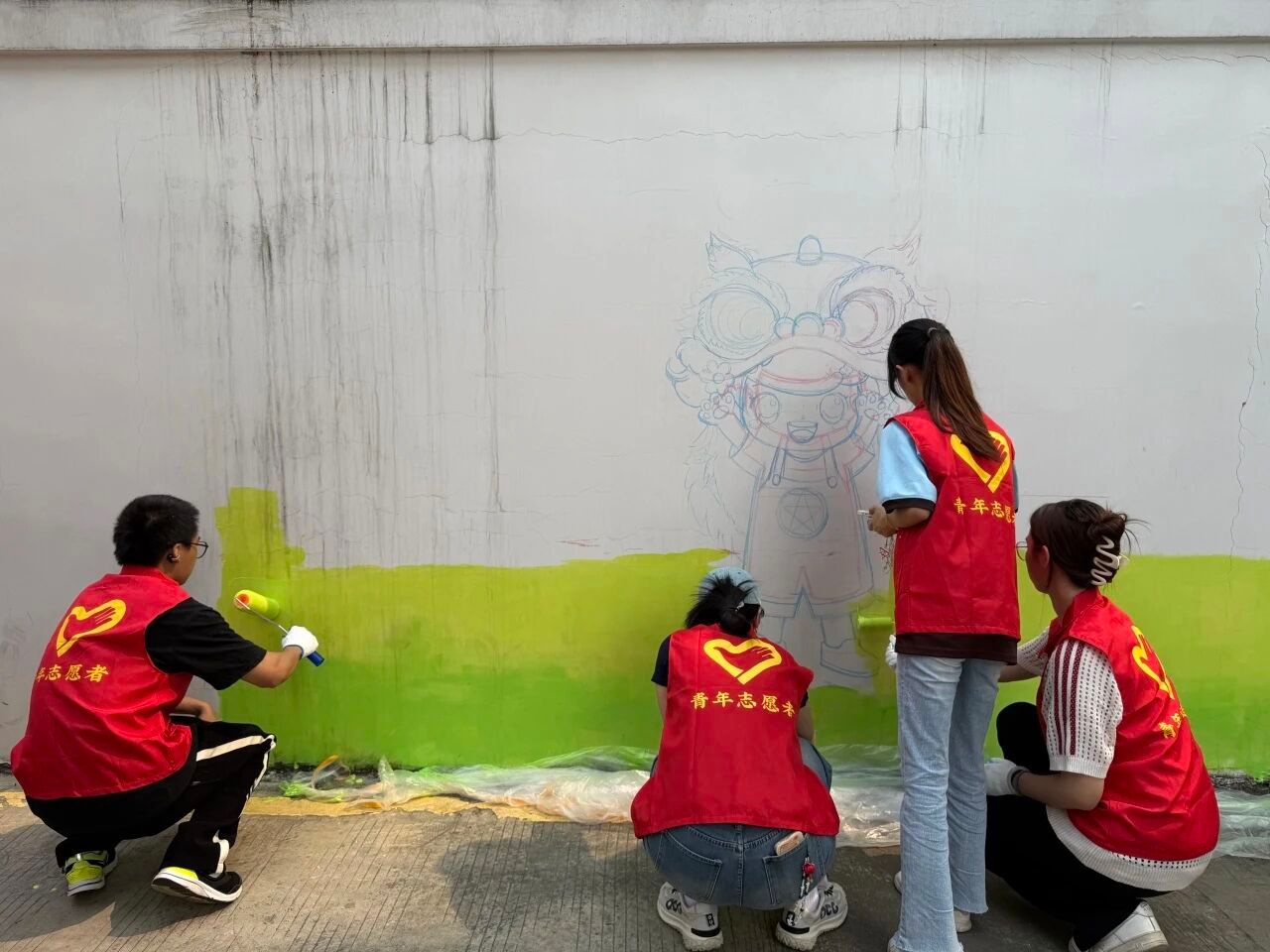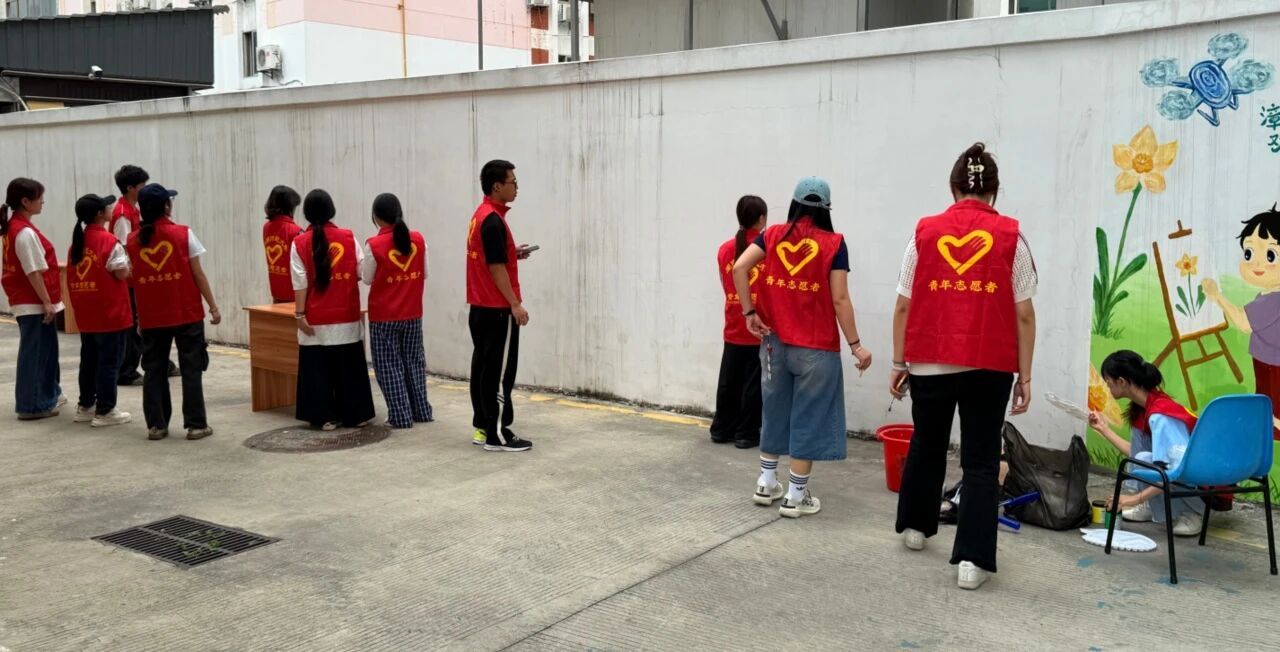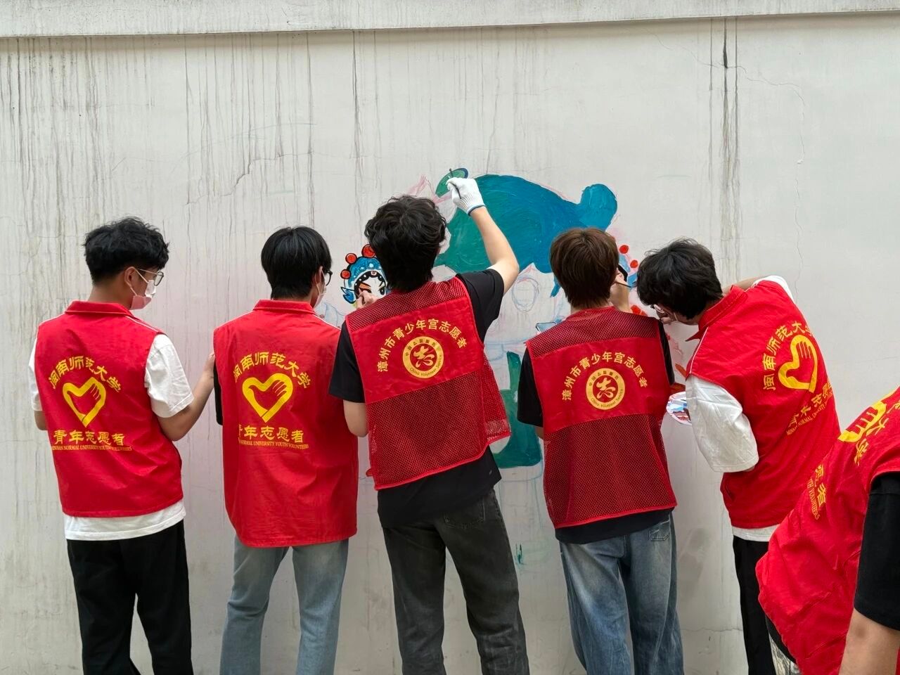 近日,为迎接五四青年节,传承五四爱国精神,助力城市文明建设与文旅融合发展,艺术学院学生第二党支部和25级公艺1班的同学们走进漳州市青少年宫开展主题墙绘志愿活动,以画笔为媒,将青春活力与文明理念融入创作,用实际行动践行青年责任。