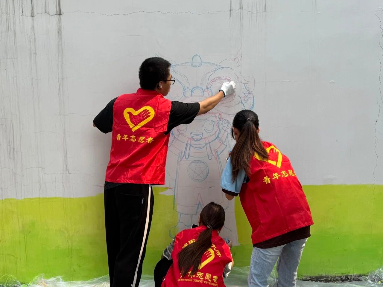 在党支部的带领下,同学们提前与漳州市青少年宫做好沟通对接,明确墙面施工区域、创作主题及相关要求,结合专业特长细化分工、明确职责。