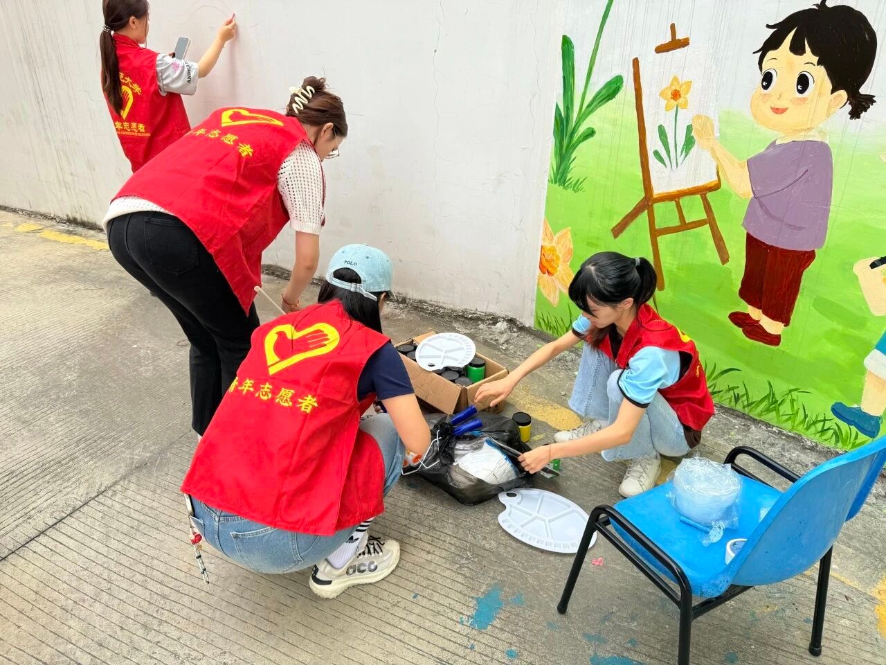 此次墙绘创作围绕五四精神、闽南非遗文化、文明城市创建等主题,兼顾童趣与教育意义,贴合青少年宫的氛围特点。