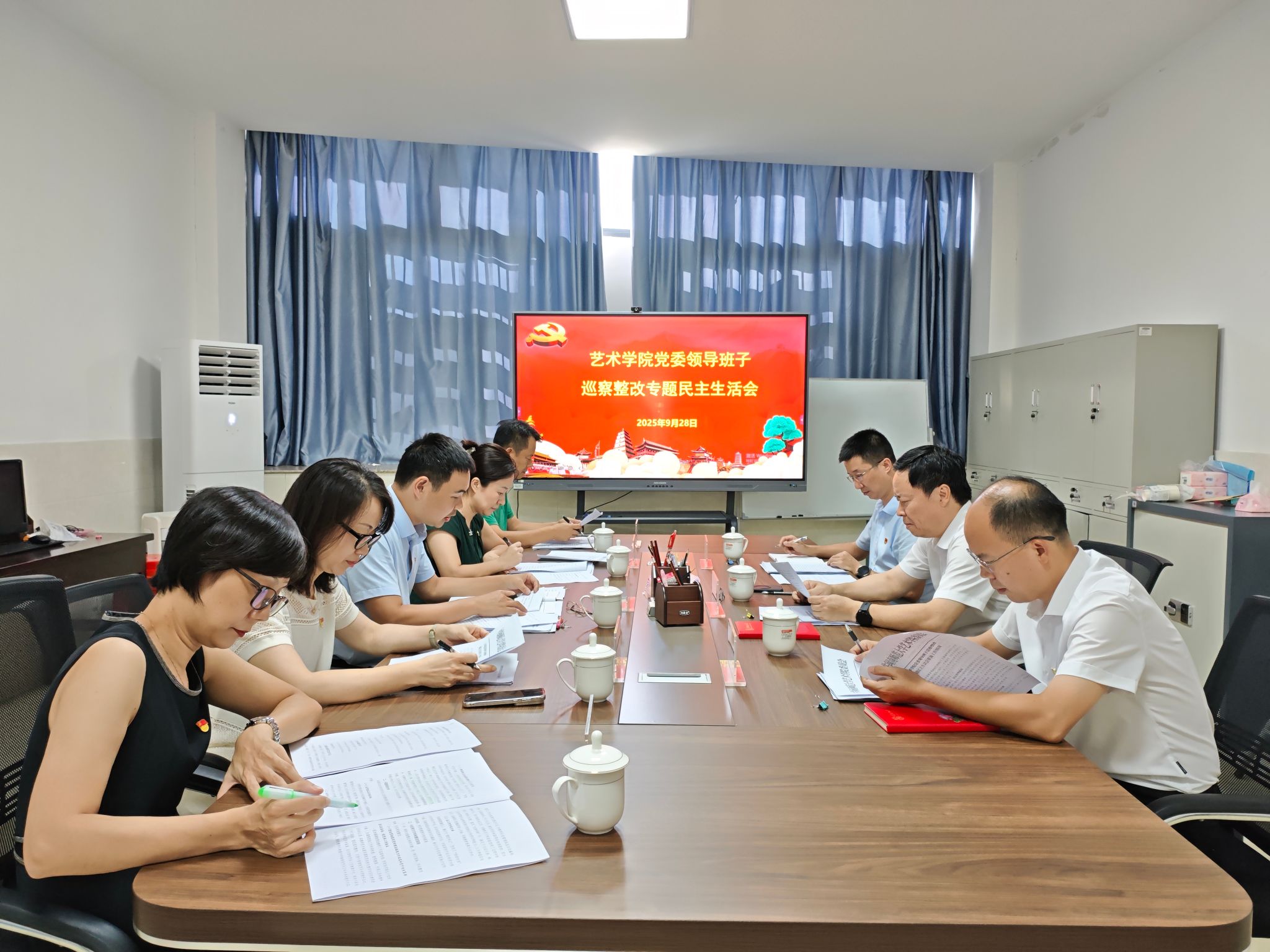 9月28日下午,艺术学院党委领导班子在杨孙西艺术馆303会议室召开巡察整改专题民主生活会。校党委副书记林致远,校党委组织部副部长李常,校纪委综合室副主任、党委巡察办副主任沈雄勇到会指导。会议由学院党委书记潘艺阳主持。